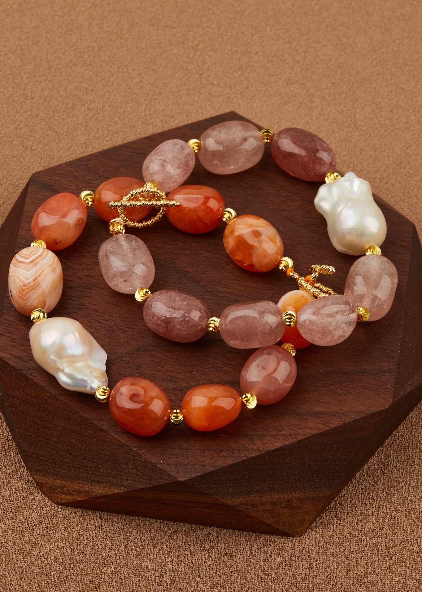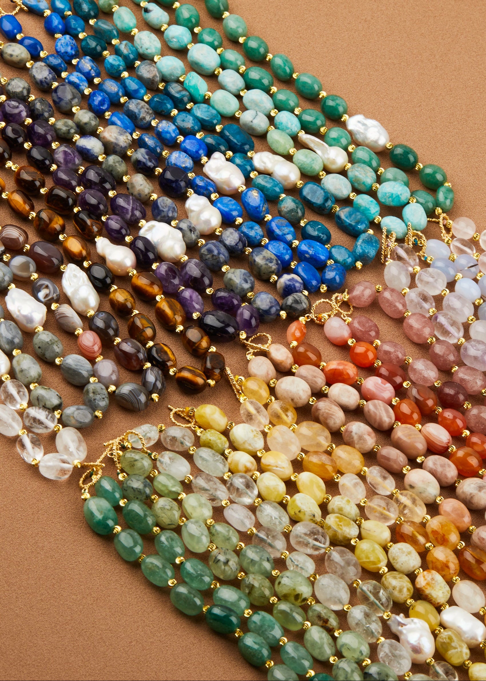 Drift into luxury with the Lost at Sea Collection—featuring AAA-grade natural stones, 18k gold-plated accents, and lustrous baroque pearls. Inspired by the ocean’s lost treasures, each piece embodies timeless elegance, like rare gems washed ashore. Due to the rarity of these stones, only a limited number are available.